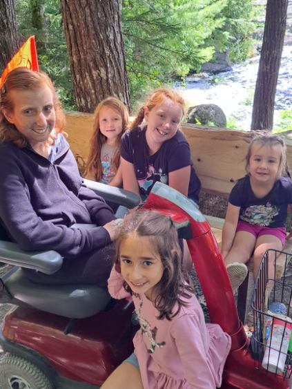 Aside from a quick thundershower, the weather was absolutely perfect. Gorgeous sun all day, cool nights. Everyday everyone did something different. Walks, trails, playgrounds, beaches, river rides, waterfall, gift shop, catching up with some precious friends and lots of biking. But I think the favorite of the week, for young and old, was being next to an awesome playground. Meeting lots of new people and #1 favorite……teeter totters. Lol
